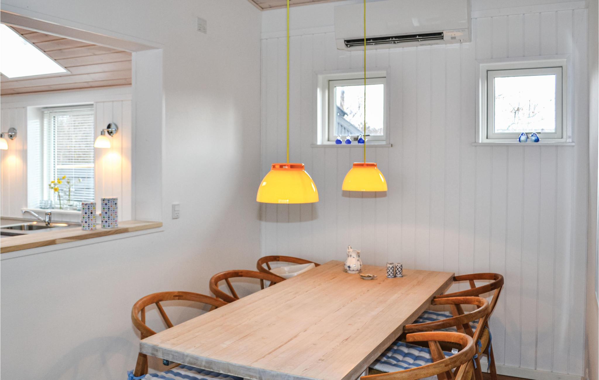 Dieses moderne Ferienhaus liegt am beliebten Boeslum Strand. Es liegt an einem ruhigen Weg direkt zum Strand. Die helle Einrichtung lässt die Innenräume einladen erscheinen, wie beispielsweise die Schlafzimmern und eine gut ausgestattete Küche. Wenn Sie nach dem Baden im Meer heimkommen, können Sie auch die Dusche im Freien benutzen. Um das Haus sind schöne Terrassen angelegt, auf denen Sie Ihre Mahlzeiten im Freien genießen und bei gutem Wetter ein sonniges Plätzchen finden können. Das gesamte Grundstück ist von einem 180 cm hohen Zaun umgeben und im Nebengebäude ist ein Hunderaum mit Käfig eingerichtet.