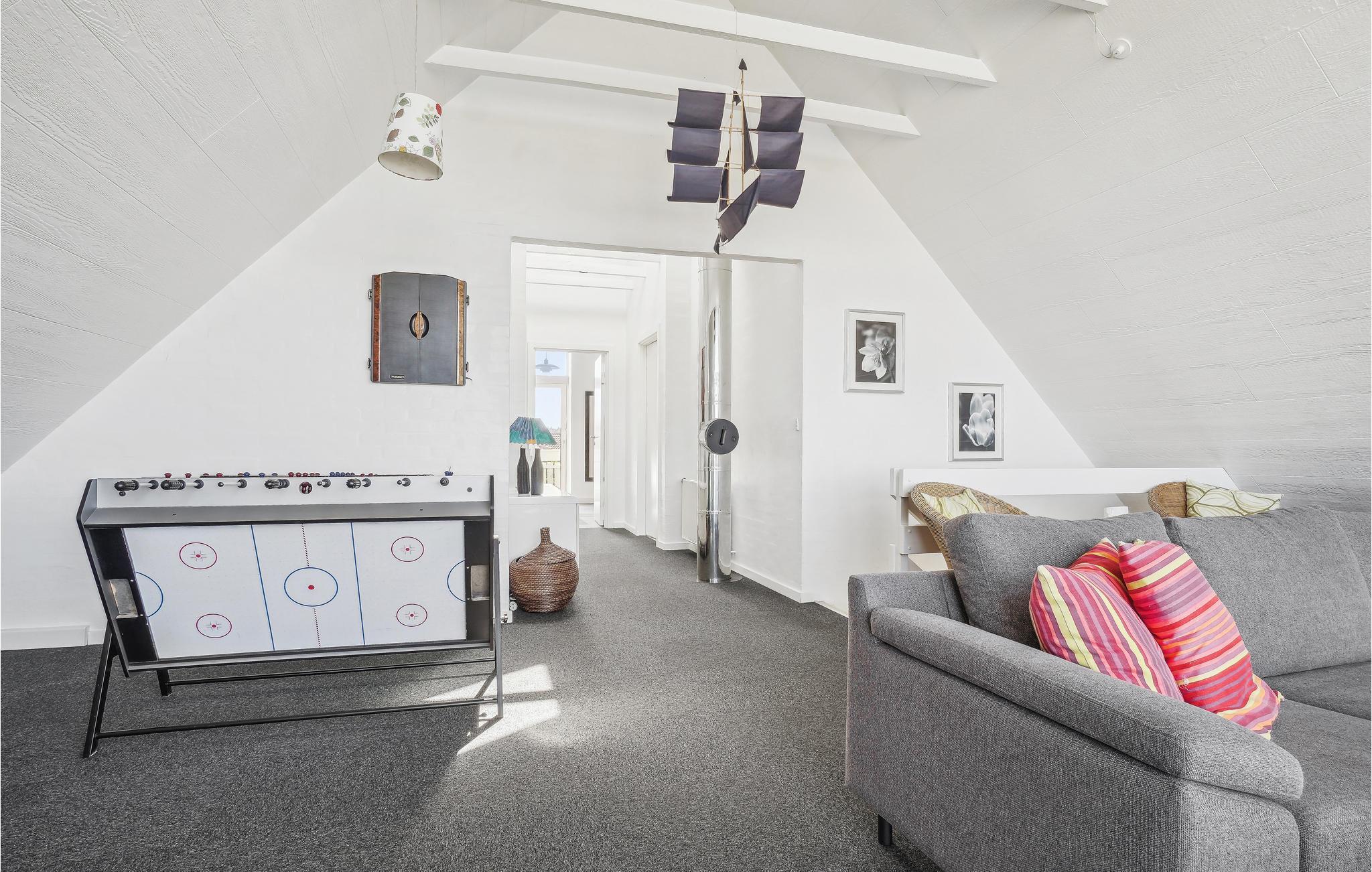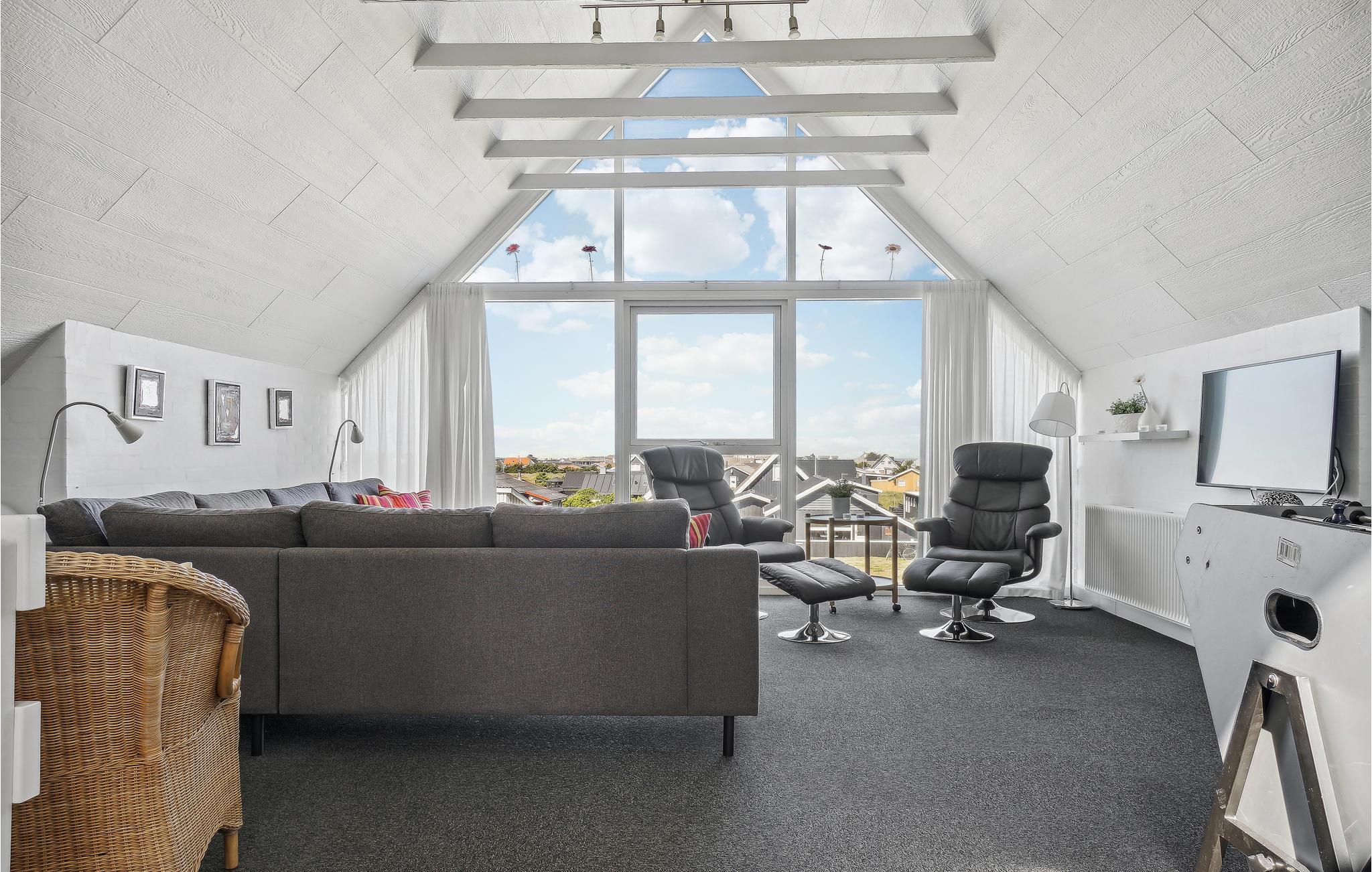 Schönes Ferienhaus mit zwei Etagen. Im 1. Stock gibt es einen Wohnraum mit einer phantastischen Aussicht auf die Stadt und die Nordsee. Ein Traumdomizil für den anspruchsvollen Sommerhausliebhaber und eine gute Basis zum Relaxen in jeder Jahreszeit. Das geräumige Haus hat große Schlafzimmer, eines im 1. Stock hat einen kleinen Balkon. Im Erdgeschoss sind ein Wellnessraum mit großem Whirlpool, Sauna und Fitnessgeräten untergebracht. Zum Haus gehört auch ein großes, eingezäuntes Grundstück, es ist somit auch für Familien mit Kindern und Hunden geeignet. Das Haus liegt im Herzen der beliebten Urlaubsstadt Nr. Vorupør - Thy, direkt an der Nordsee. Leicht erreichbar sind alle Einrichtungen der Stadt. In der Umgebung liegen Ferienhäuser und solche, die das ganze Jahr über bewohnt werden. Vorupør ist mitten im Nationalpark Thy gelegen. Hier ist auch der Strand Cold Hawaii gelegen, der einzigartige Möglichkeiten zum Windsurfen bietet.