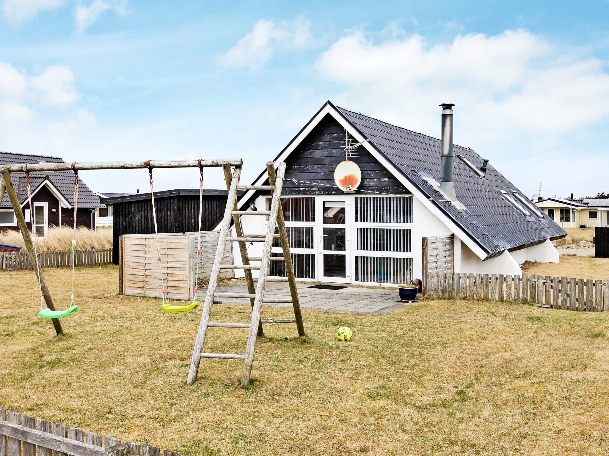 Gemütlich eingerichtetes Ferienhaus, 2007 erweitert und modernisiert mit u.a. Badezimmer und einem großen Schlafboden. Das Haus liegt auf einem 1250 m2 großen Natur-/Dünengrundstück, nur 200 m von der Nordsee und dem breiten Sandstrand entfernt. Es gibt zwei Schlafzimmer, ein Badezimmer mit Duschnische und Fußbodenheizung, einen großen Hems mit Oberlichtfenstern und ein Wohnzimmer mit Holzofen, TV mit SAT-Empfang, DVD und Video. Der Großteil des Grundstückes ist von einem niedrigen Zaun umgeben. Einige Geschäfte vor Ort sind in der D+E Saison ganz oder teilweise geschlossen. Eine kleine örtliche Bahn fährt ca. 15 m vom Haus.